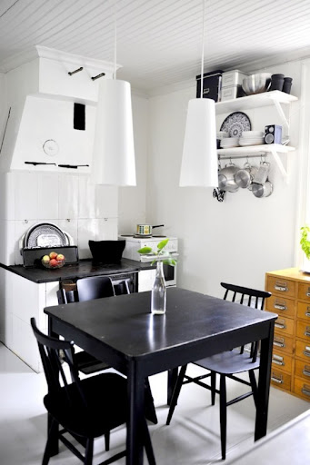 Gray and white kitchen, and it works best for smaller spaces.